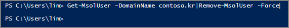 Get-MsolUser -DomainName contoso.kr|Remove-MsolUser -Force
