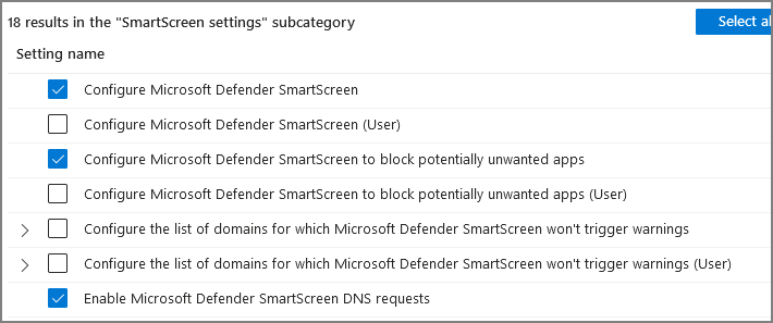 Edge에서 Web Protection을 적용하려면 Smart Screen을 활성화 해야합니다.