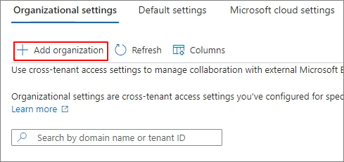 Entra Admin Center -> External Identities -> Cross-tenant access settings -> Organizational settings -> Add organization