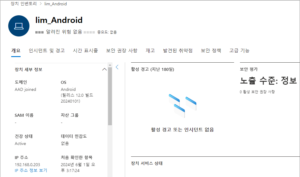 EDR 수준까지는 아니어도, Defender에서 통합으로 장치관리를 할 수 있습니다.