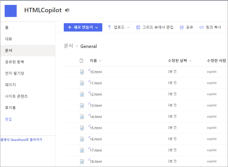제 블로그 글들을 Sharepoint로 html 파일로 옮기고 그 정보를 Copilot을 통해서 활용가능한지 테스트하고 싶어졌습니다.