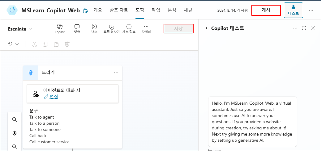 2024.08.18 - [Copilot/Copilot Studio] - Copilot Studio. 사용자에 대한 옵션으로 선택지 만들기