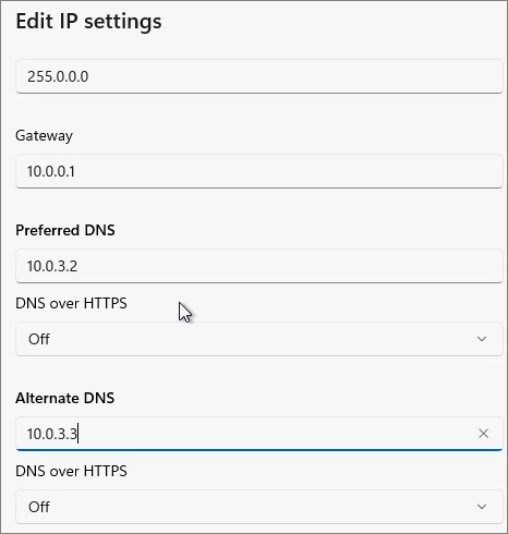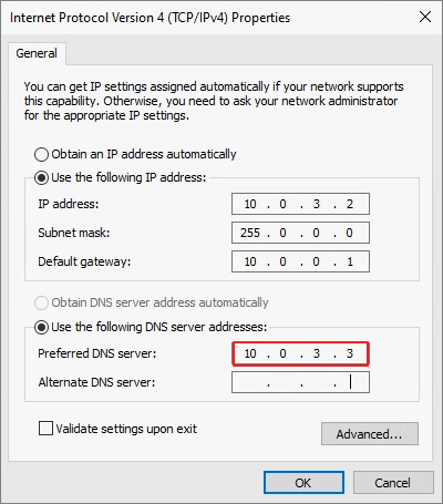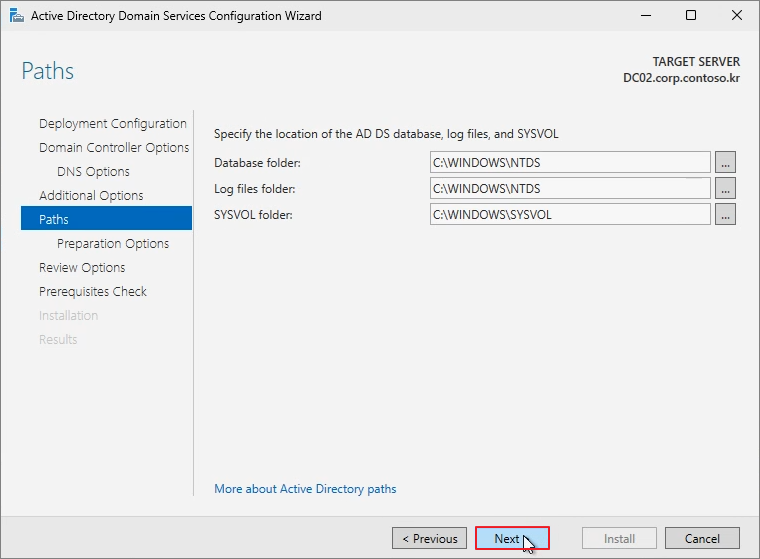 DC01을 Main DNS, DC02를 Alternate DNS로 지정