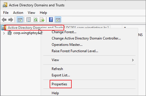 Active Directory Domains and Trusts 우클릭 -> Properties