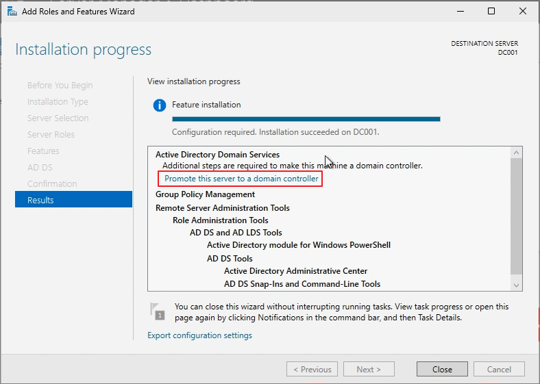 Main DC와 동일한 방식으로 Active Directory Domain Services Roles 설치 과정을 진행합니다.