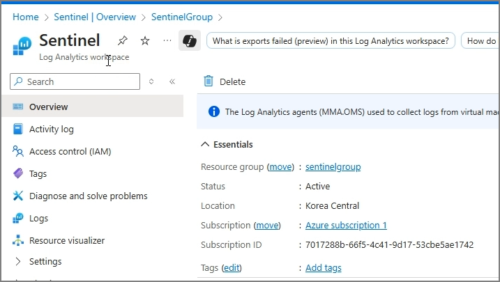 Sentinel은 원래 SIEM 솔루션이지만, 저는 우선 로그 통합 관리에 초점을 맞춰보려고 합니다.