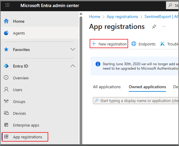 Step 2. Sentinel 로그 Export를 위한 Enterprise App 등록