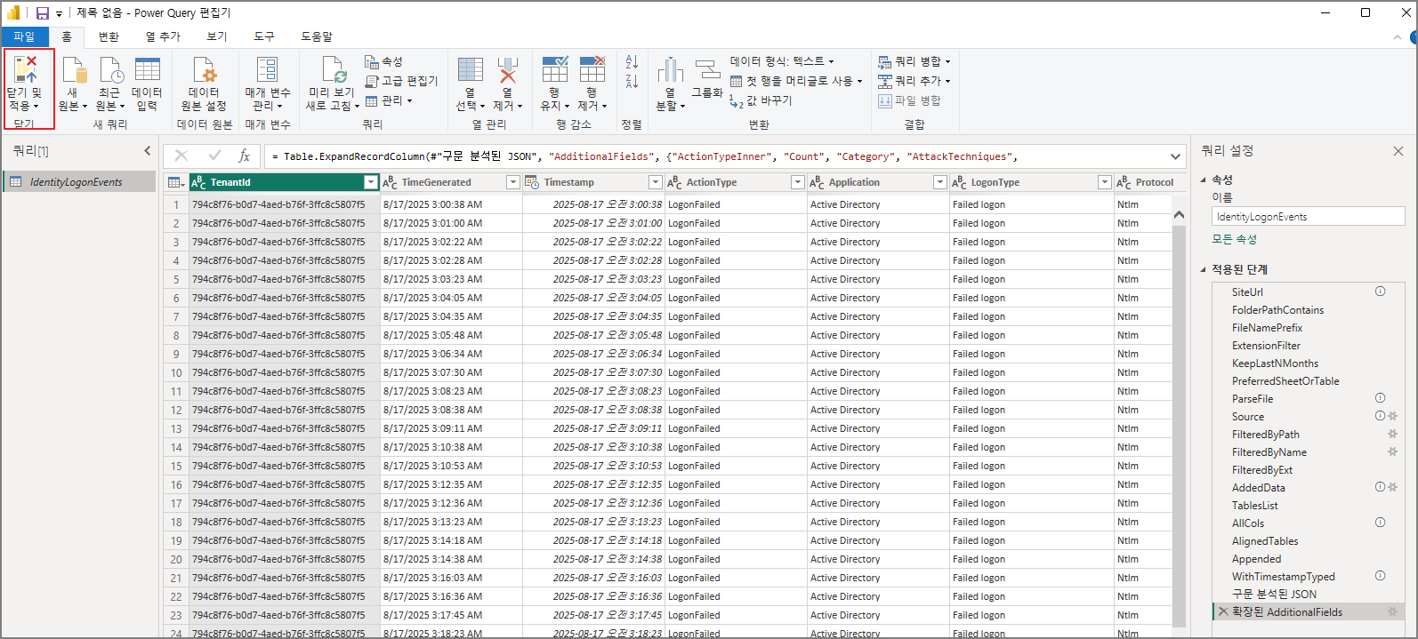 Signal 확인: Advanced Hunting에서 AD Logon Event가 기록되는지 확인합니다.