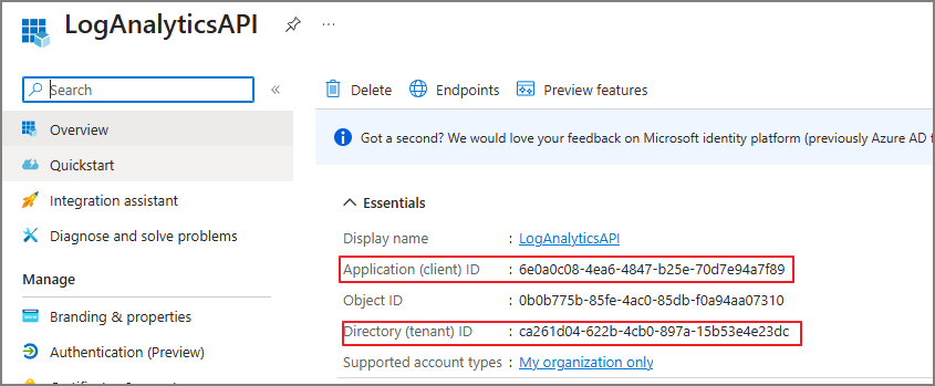 이를 위해 Log Analytics API 호출 방식으로 접근하며, Enterprise App 등록이 필요합니다.