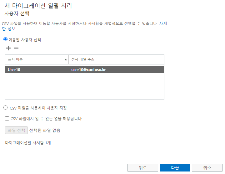 Exchange Online 관리 센터에서 마이그레이션 완료된 것으로 확인