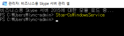 우선 Stop-CsWindowsService를 실행하여 Skype 관련 서비스를 모두 종료합니다.