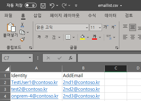 우선 아래와 같은 형식으로 CSV 파일로 저장합니다.