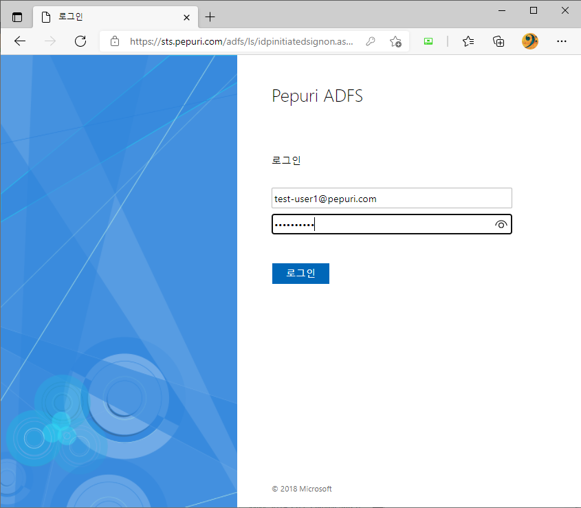 ADFS 주소 및 계정 정보를 입력한 뒤, Next