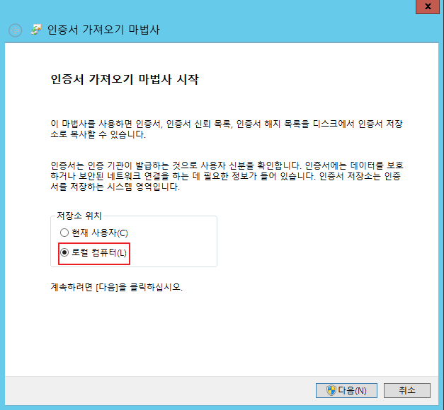 인증서 발급 과정은 이전 포스팅을 참고하시는 것이 좋습니다.