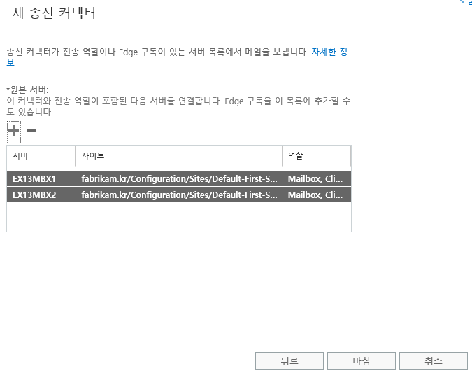 ECP 사이트 - 메일 흐름 - 송신 커넥터 - 새로 만들기