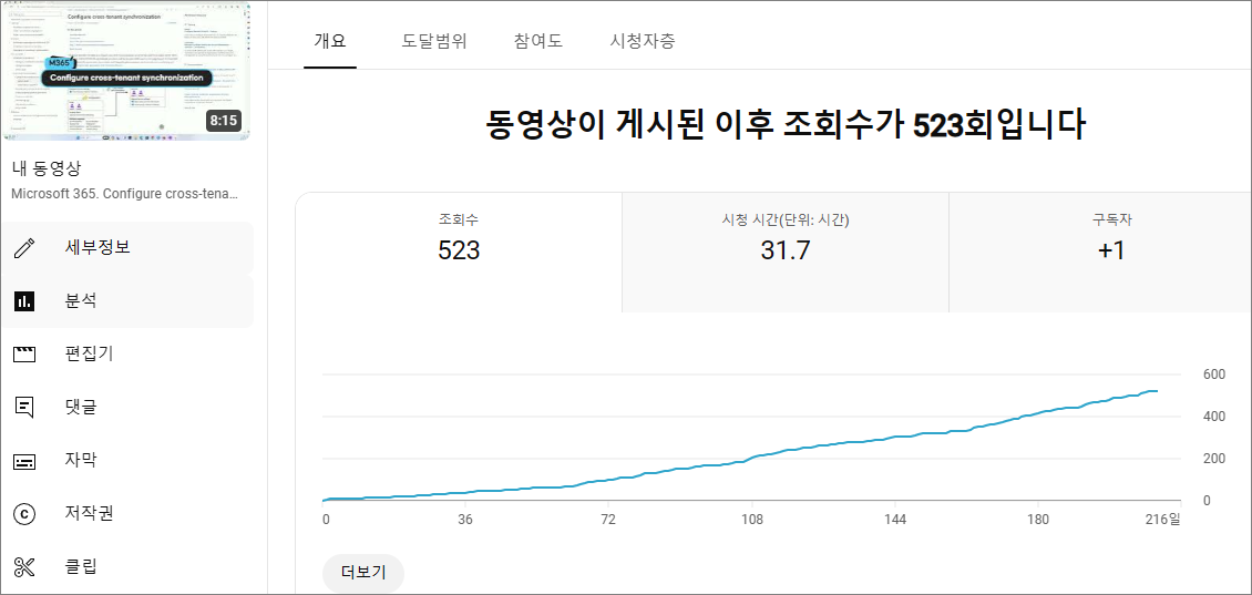Entra 제품이 국내에서는 관심이 적지만, 해외에서 관심이 있기 때문에 제가 공부하는데 동기부여가 많이 됩니다. 크로스 테넌트 마이그레이션도 조회수가 높은 것을 봐서는 Exchange와 관련된 개념 설명도 향후 제작할 계획입니다.