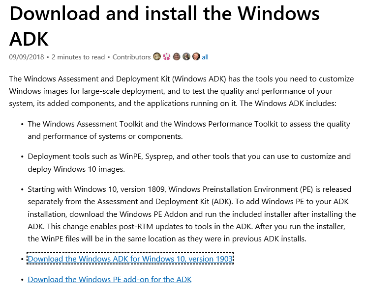 Download and install the Windows ADK