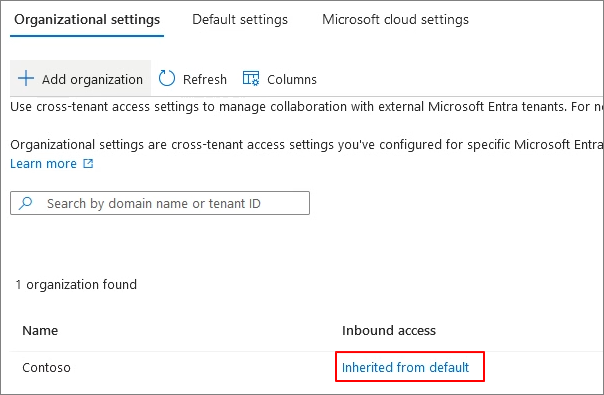 Entra Admin Center -> External Identities -> Cross-tenant access settings -> Organizational settings -> Add organization