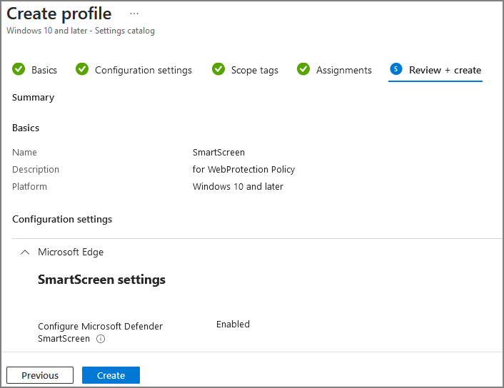 Edge에서 Web Protection을 적용하려면 Smart Screen을 활성화 해야합니다.