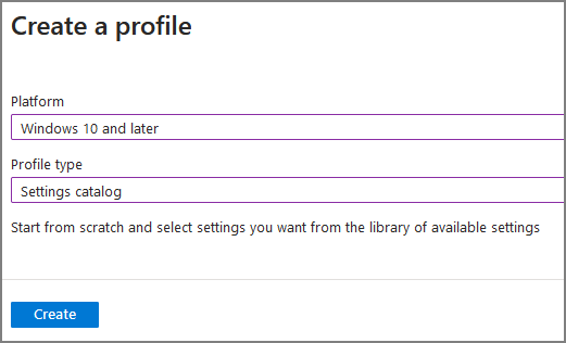 Windows 10 and later -> Settings catalog -> create