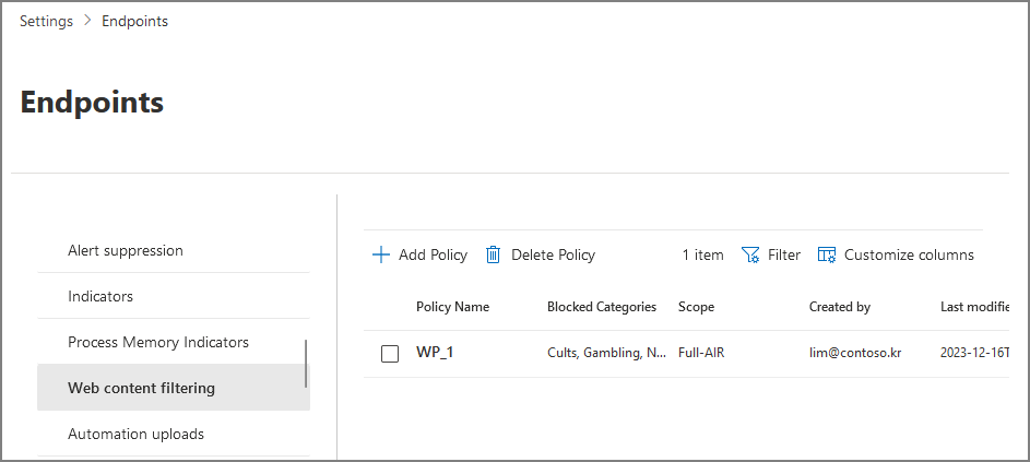 Endpoints -> General -> Advanced features -> Web content filtering -> On