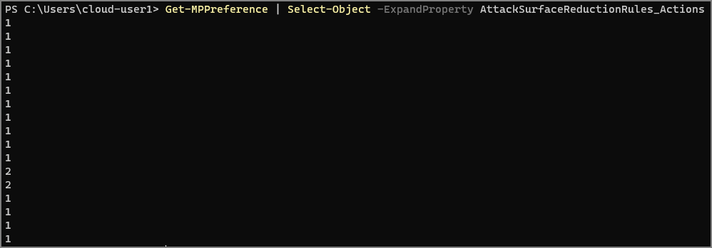 Get-MPPreference | Select-Object -ExpandProperty AttackSurfaceReductionRules_Actions