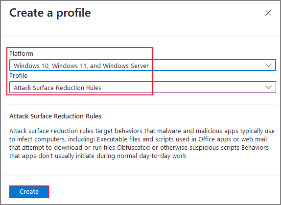 Attack surface reduction -> Create Policy
