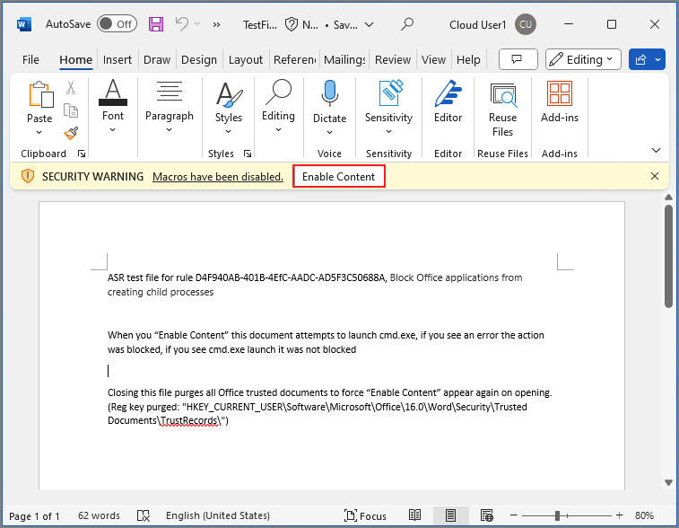 | Block Office applications from creating executable content |
