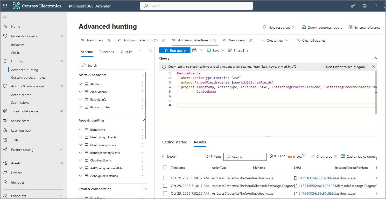 Advanced Hunting에서 다음과 같이 쿼리