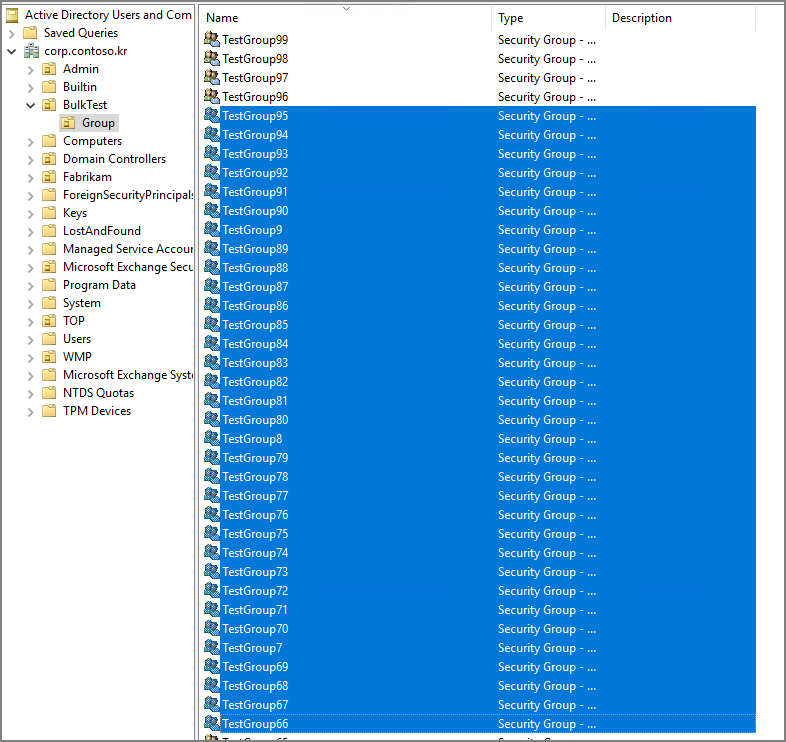 아래와 같이 BulkTest 하위에 Group 이라는 OU가 있습니다.