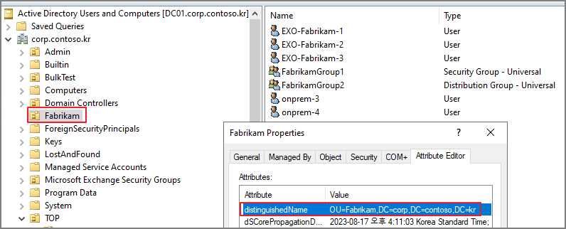 OU의 distinguishedName을 확인합니다.