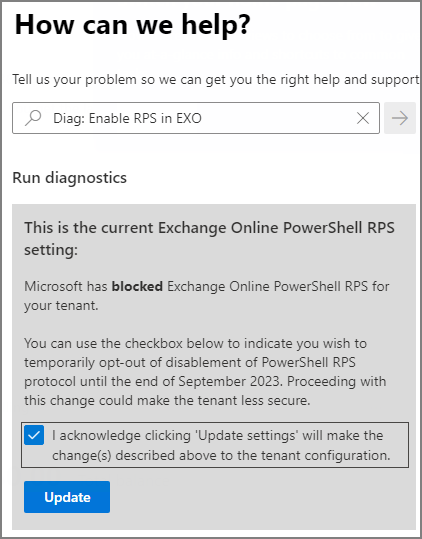 -> 보안 상의 이유로 기존의 레거시 기술인 Remote Powershell(RPS)을 비활성화 한다는 공지입니다. 최근에 만든 테넌트는 RPS가 비활성화됩니다.