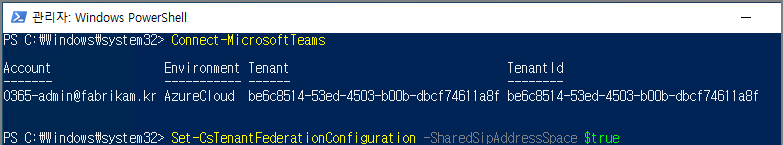 Teams Powershell 에 연결한 뒤, 다음 명령어를 실행합니다.