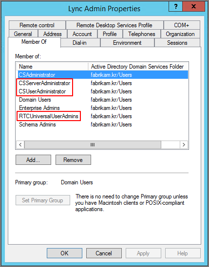 Lync Server의 서비스 계정에 다음 권한을 추가합니다.