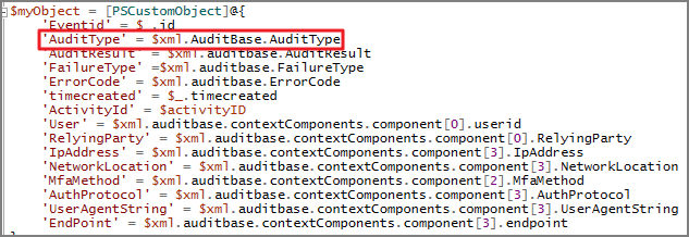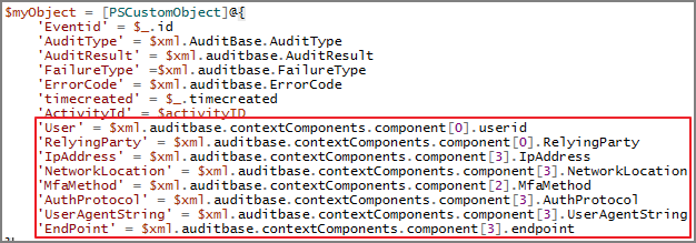 'MfaMethod' = $xml.auditbase.contextComponents.component[1].MfaMethod