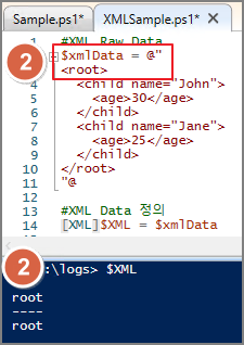 위 스크립트에서 가장 중요한 [XML]$XML 입니다. ChatGPT에게 확인해 보았습니다.