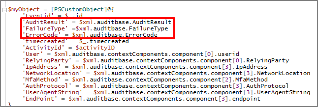 'ErrorCode' = $xml.auditbase.ErrorCode