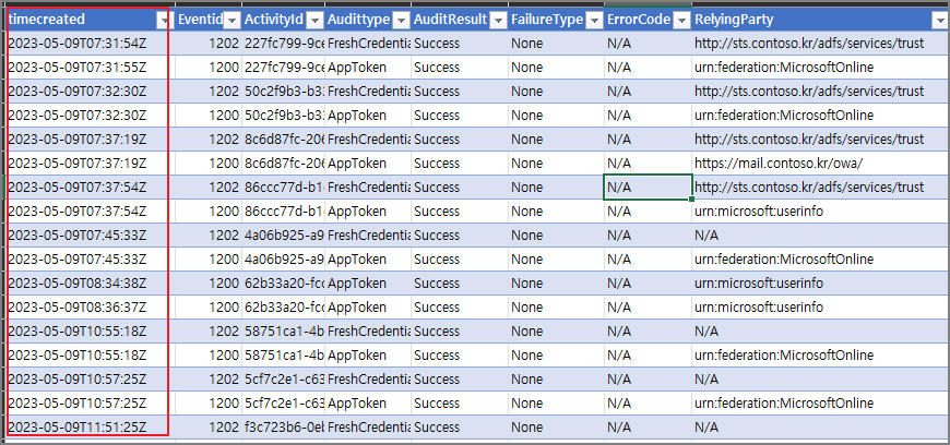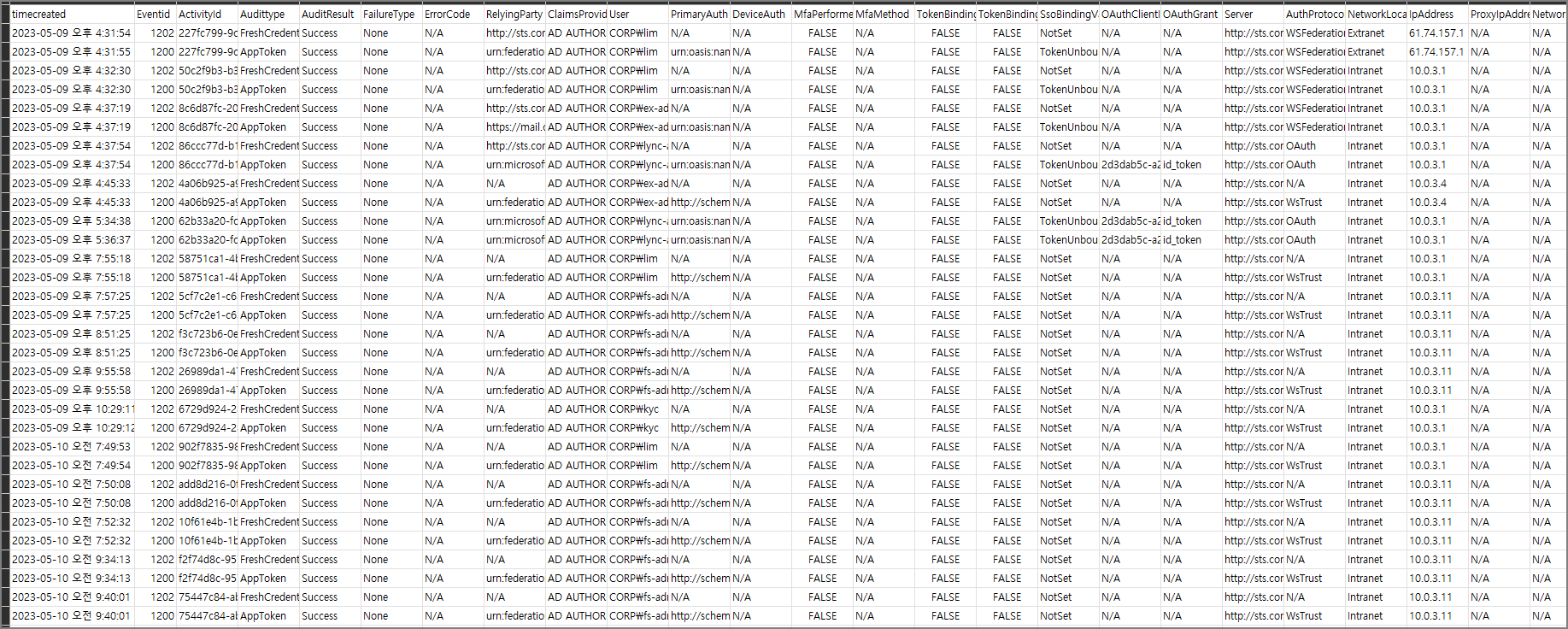 아래와 같이 각각의 속성을 확인하며 로그인 기록을 관리할 수 있습니다.
