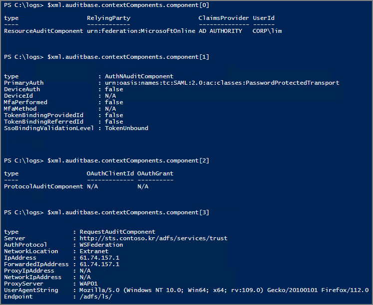'OAuthGrant' = $xml.auditbase.contextComponents.component[2].OAuthGrant