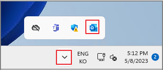 우측 하단의 Outlook 아이콘을 Ctrl 키 + 우클릭