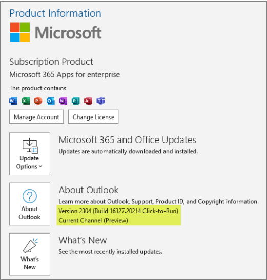 3) The Outlook build number must be 16327.20200 or later.
