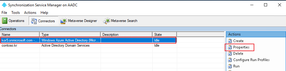 AD Connector 를 선택한 뒤, Properties 를 클릭합니다.