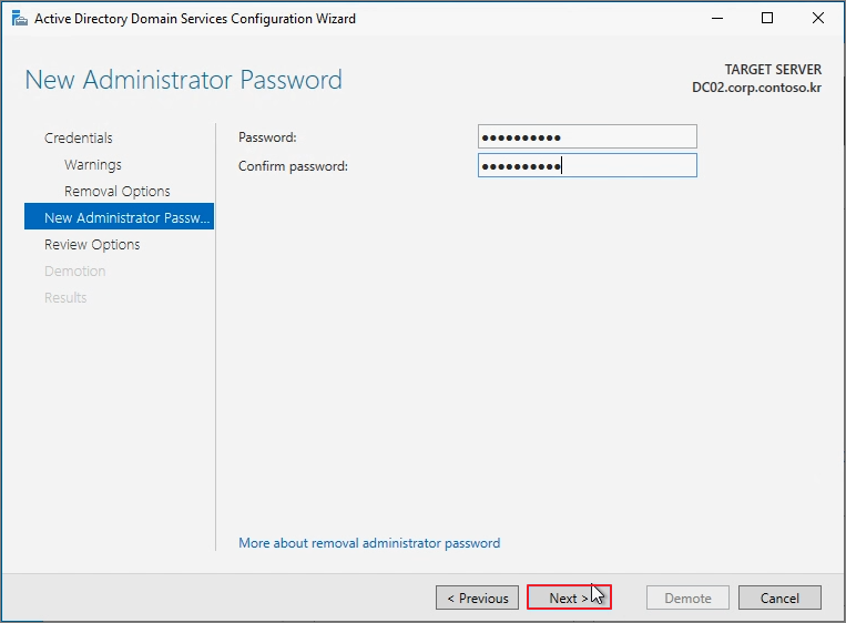 새 VM에서 DC01 IP 설정 -> DNS는 DC02로 설정