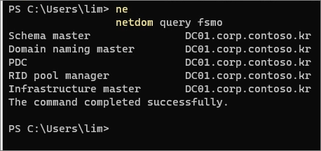 아래의 명령어를 입력하여 DC Master 역할을 DC02로 변경합니다.