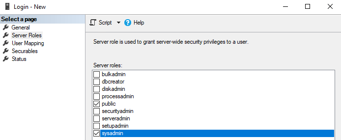 Security - Logins -우클릭 - New Login