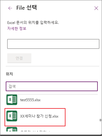 Onedrive -> Onedrive -> Forms Excel 파일 지정