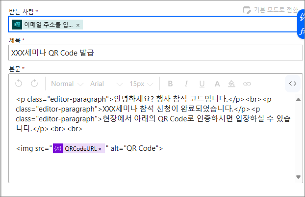 2. Power Automate로 QR Code를 등록한 Email로 발급