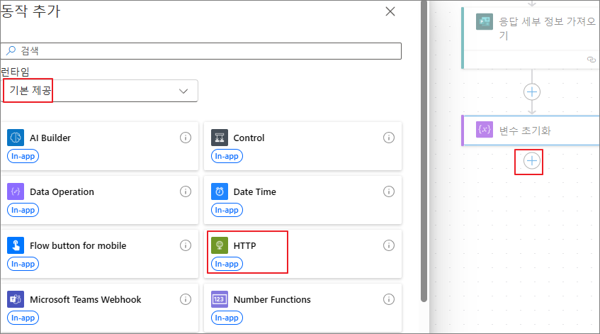 작업 추가 -> 런타임: 기본 제공 -> HTTP