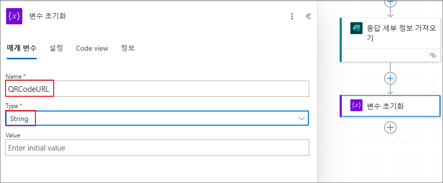 QRCodeURL을 선택한 뒤, Value는 위와 동일한 방식으로 선택합니다.