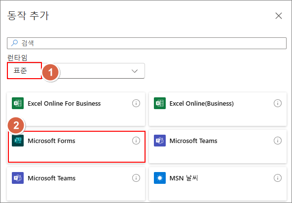 작업 추가 -> 런타임:표준 -> Office 365 Outlook